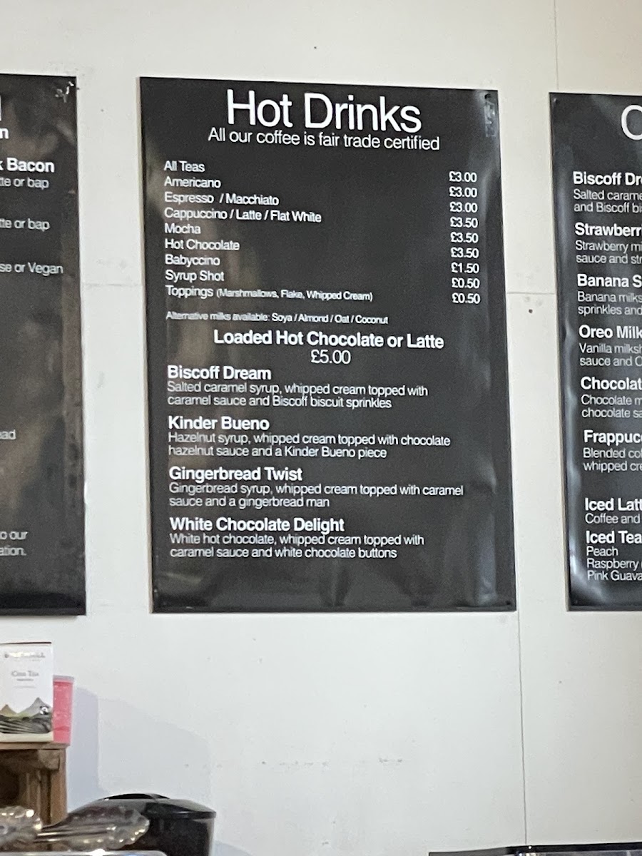 The menu is simple yet appealing, perfect for a light lunch or an afternoon snack. Start your visit with one of their hot drinks, such as a rich Americano or a creamy Cappuccino, both priced at just £3.00. For something a touch sweeter, indulge in their sumptuous Hot Chocolate at £3.50 or explore the Mocha option for a delightful chocolate-coffee fusion. The cafe also caters to those who prefer their drinks chilled, offering refreshing Iced Lattes for £4.00 on warmer days.
